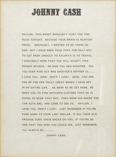 Rather than offering a simple apology, Johnny Cash did what only he could do—he wrote a letter. Typed out with a mix of humor, wit, and unmistakable personality, the message was both an apology and a playful jab, capturing the spirit of the very roast he had missed.